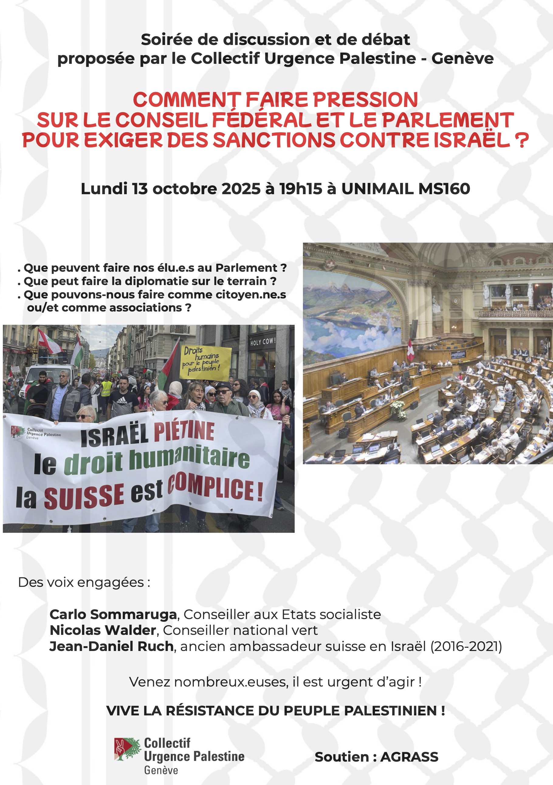 Débat: comment faire pression sur le CF et le parlement pour exiger des sanctions contre Israël?