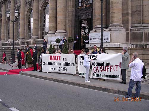 rencontre Mahmoud Abbas et Micheline Calmy-Rey lors de l'inauguration de l'exposition "Gaza - A la croisée des civilisations" 26 avril 2007 - devant le Musée d'Art et d'Histoire - Genève